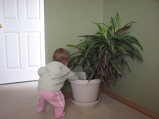 Then I noticed there was a trail of dirt running through my living room, a la Hansel and Gretel. So I followed that trail and what do you think I found? Dirt, well potting soil to be exact, scattered all over my bedroom floor! Who could have or would have done such a terribly messy thing?